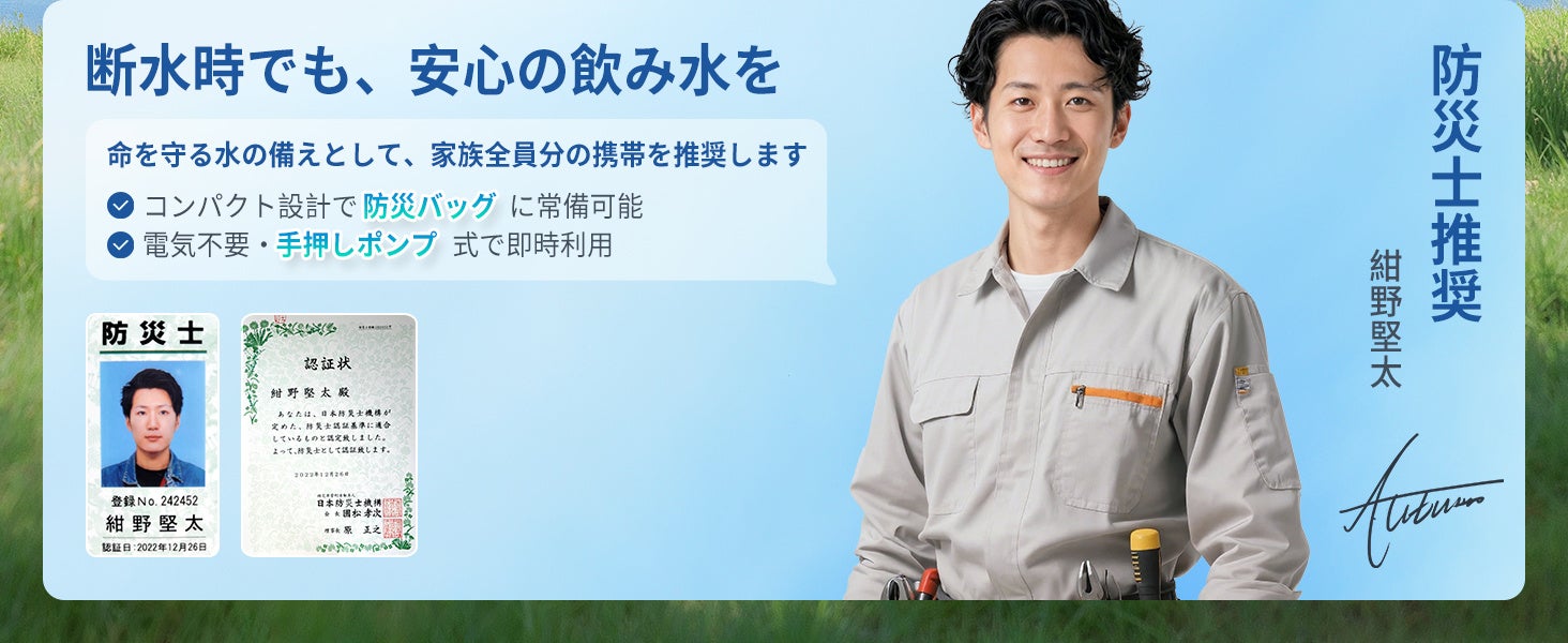 防災用品としての備えはもちろん、キャンプ・登山・旅行など、幅広い用途で活用できるポータブル浄水器。