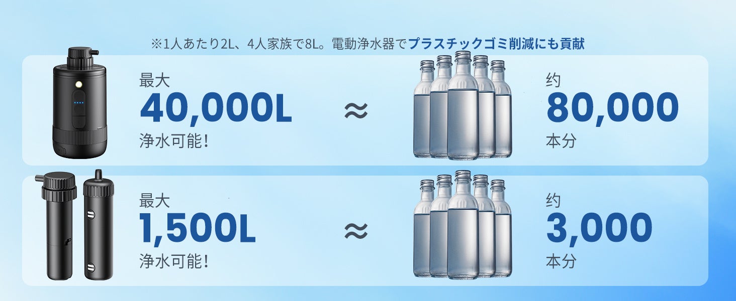 短時間で飲料水を確保できるため、家族やグループでの使用にも適しています。