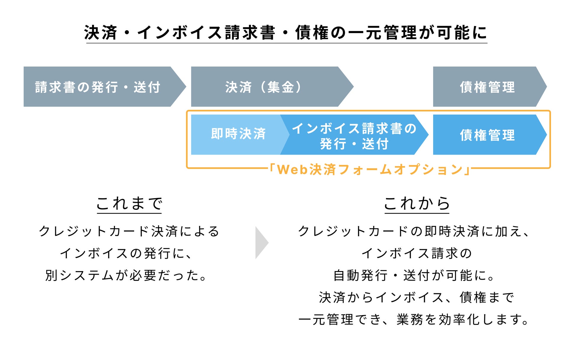 オンライン上でクレジットカードの即時決済・インボイス発行ができる機能を提供