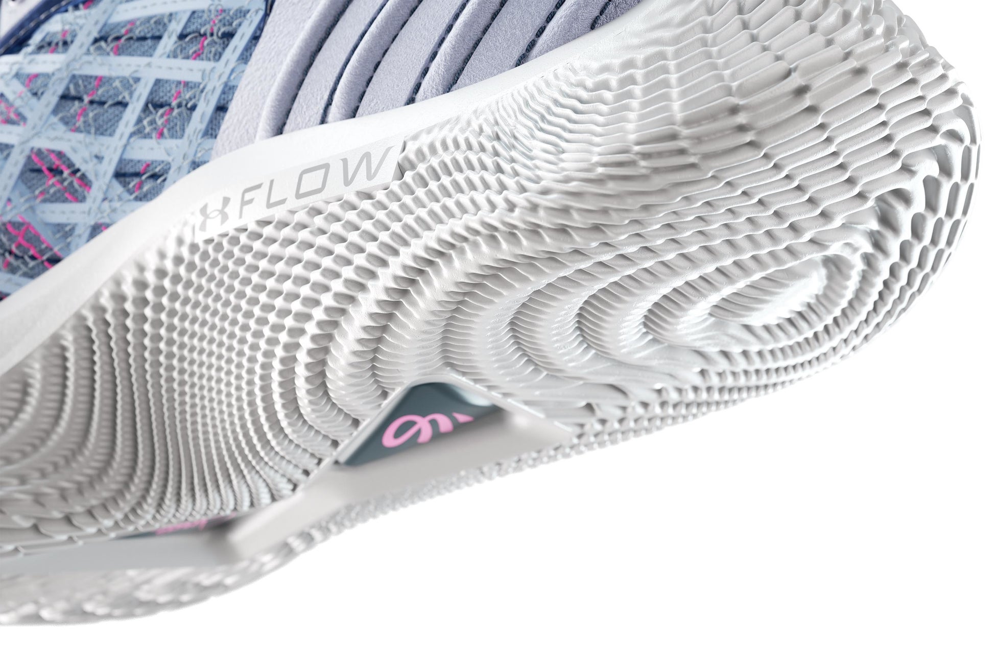 「カリー フロー9」では、前作の「カリー フロー8」で採用したクッショニングフォーム「UAフロー」の優れたクッショニングはそのままに、アンダーアーマーのランニングシューズに搭載されているアッパーテクノロジー「UAワープアッパー」をバスケットボールシューズで初めて採用。