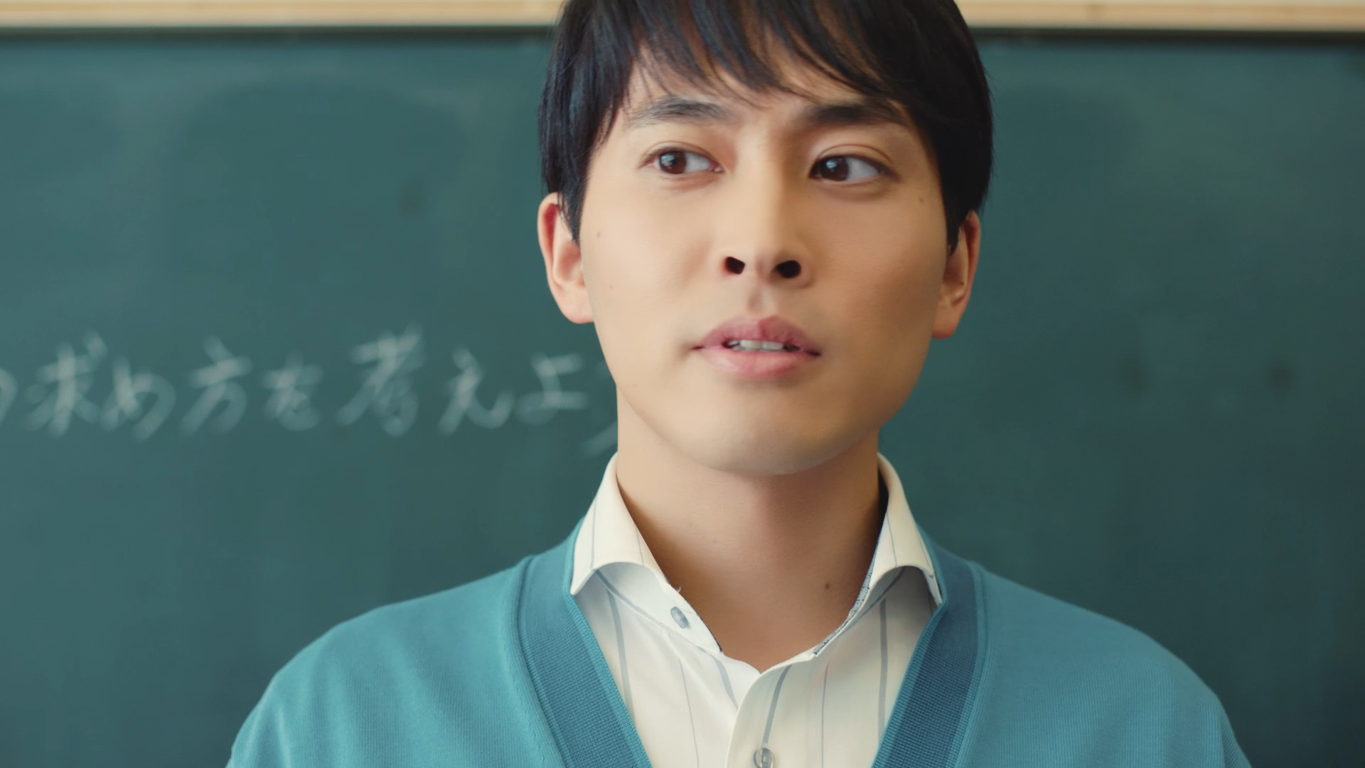 「eYACHO」のCMで建設現場の新人社員を演じている平埜生成さんを、今回のCMでは教師役として起用。