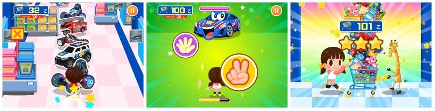 トイザらスで夢のおもちゃをカートに詰め放題するわくわくを体験!トイザらス店内を自動で前進するキャラクターを左右に操作して、コース内に置かれたトイザらスのオリジナルブランドのおもちゃを集めるゲームです。コース上の障害物にぶつかると集めたおもちゃを落としてしまうため、上手に避けながらゴールを目指します。コースの最後で「おもちゃのボス」とじゃんけんで戦い、勝利すると、さらにボスのおもちゃも手に入れることができます。全6ステージあり、トイザらスのオリジナルブランドである車のおもちゃの「スピードシティ」、幼児向け知育玩具「トップトッツ」、ぬいぐるみの「フレンズフォーライフ」、お世話人形の「ベビーブラッシュ」、ボードゲーム/パーティゲームの「プレイポップ」の5ステージ全てのボスに勝利するとEXTRAステージをプレイすることができます。