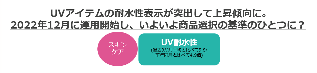 ・UVアイテムの耐水性表示が突出して上昇傾向に!2022年12月に運用開始し、いよいよ商品選択の基準のひとつに?
