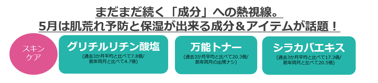 ・まだまだ続く「成分」への熱視線。5月は肌荒れ予防と保湿が出来る成分&アイテムが話題!