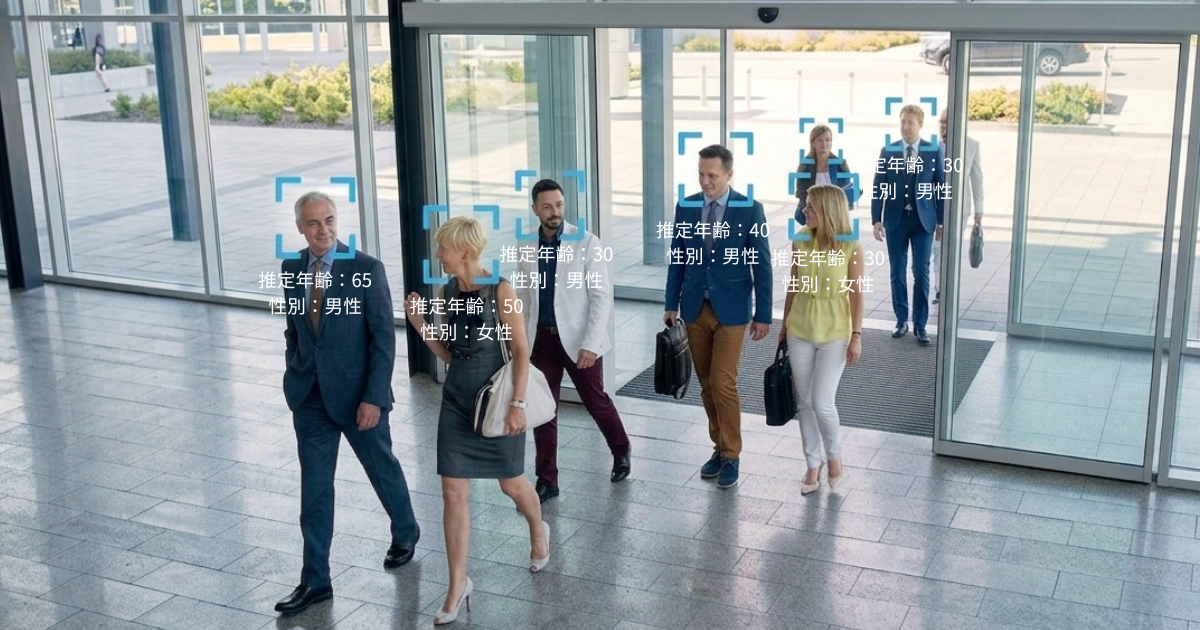 豊郷小学校旧校舎群を訪れる来場者を対象に、敷地内の要所と最寄り駅に顔認証システムを設置し、推定される年代や性別、来場人数および来場時間帯などのデータを取得・分析し、来場者の「属性×人流」を可視化します。