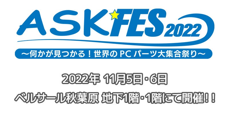 株式会社アスク(本社:東京都千代田区)は、2022年11月5日(土)と11月6日(日)の2日間、ベルサール秋葉原にて、自作PCパーツイベント「ASK★FES 2022 ~何かが見つかる!世界のPCパーツ大集合祭り~」を開催いたします。
