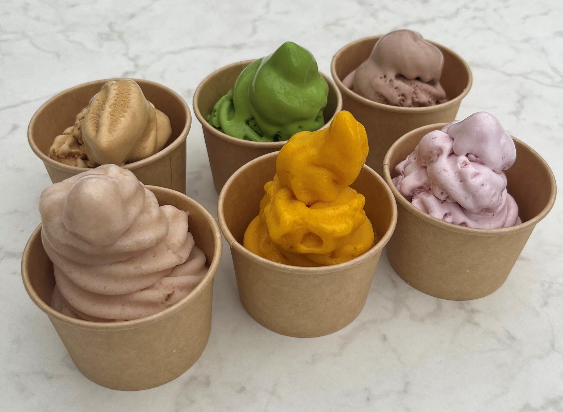 焦がしキャラメル味や、果汁を使用したフルーツ系の味など、バラエティ豊かな味わいのジェラートを取り揃えました。