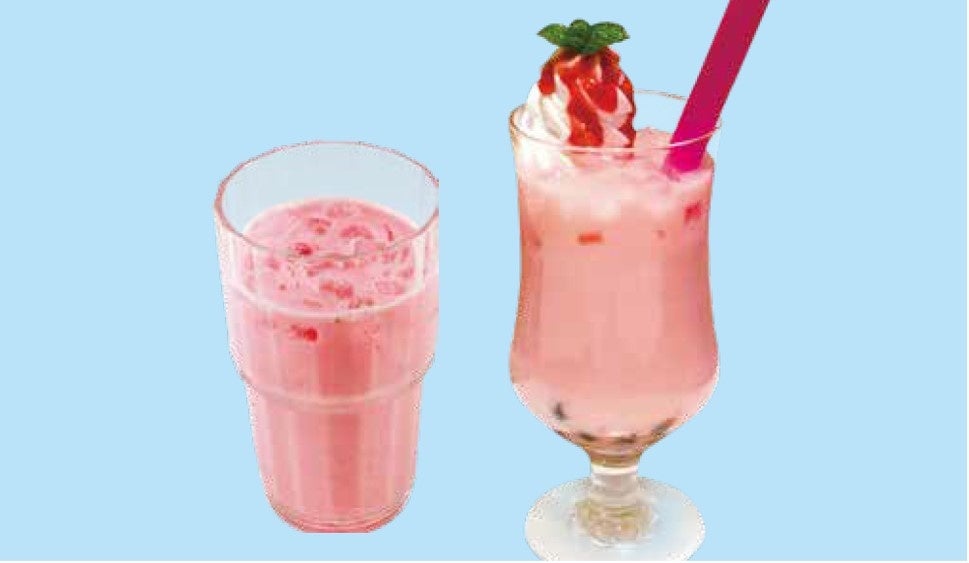 「(右)苺ラッシー/(左)タピオカ苺ラッシー」430円/650円