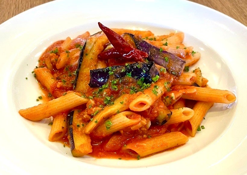 揚げ茄子の甘みとパンチェッタの旨みに唐辛子の辛さがクセになる、夏にぴったりなスパイシーパスタです。