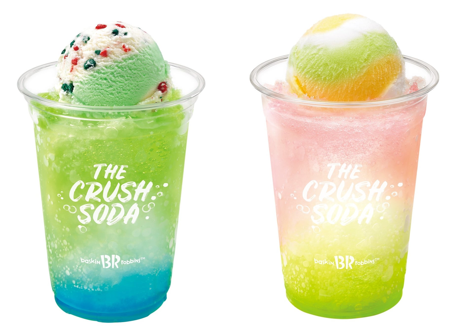 「ザ・クラッシュソーダ」(左)メロン&ブルー(右)白桃&マスカット 各600円