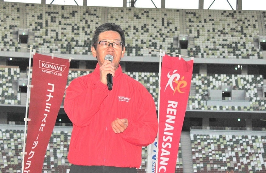 「この『超スポーツクラブ!ファンランリレー』は初めての試みです。それを陸上競技の聖地・国立競技場で開催できること、また皆さまの今日の笑顔を我々一同大変嬉しく思っています。これ以上ない晴天に恵まれた今日、皆さまケガ無く、楽しくゴールしてください!」
