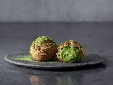 軽い食感と繊細なくちどけが特徴のラングドシャーをのせて香ばしく焼き上げたシュー生地に、蔵出し宇治抹茶のまろやかでコク深い豊かな味わいの自家製宇治抹茶クリームをたっぷり詰めました。店内で焼き上げたシュー生地に、販売時間に合わせてクリームを詰めて提供します。スタッフが手間を惜しまずひとつずつ丁寧に仕上げているので、作り立てならではのおいしさを楽しめます。