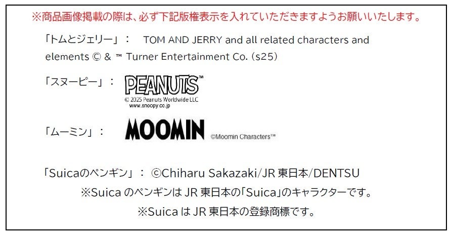 今年3月の開催に続き第二弾となる今回のポップアップショップでは、「Suicaのペンギン」の新商品2アイテムが、オンラインショップでの販売に先駆けてラインナップに加わります。また「もちもち素材のぬいぐるみティッシュカバー」やブランケットなどの「おうち」アイテムも販売します。「PEANUTS」「MOOMIN」では秋冬シーズンに使えるインテリア用品や生活雑貨、日常使いできるファッションアイテムなどがポップアップショップに初登場。第一弾ポップアップショップで好評だった「トムとジェリー」の限定商品も引き続き販売します。