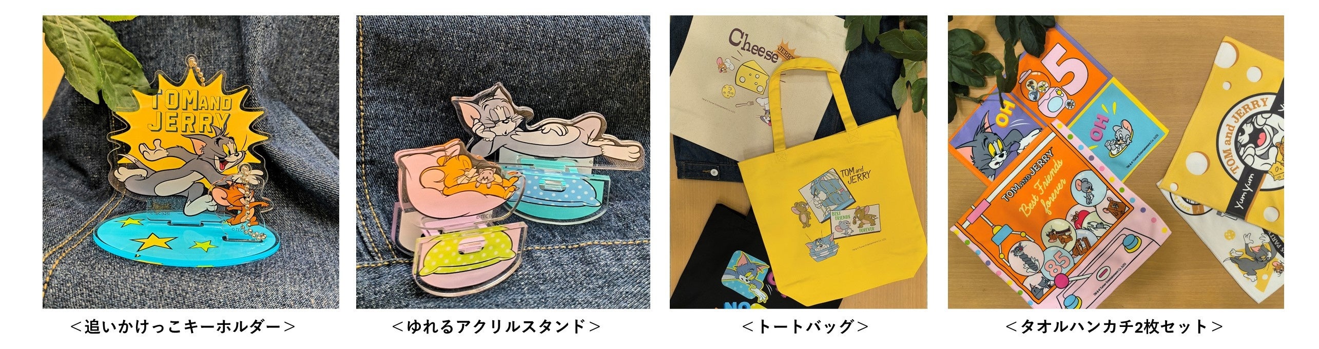 物語に登場する「ジェリー」が大好きなチーズをモチーフにしたトートバッグやタオルハンカチなど、ポップアップショップでしか手に入らない限定商品を販売します。