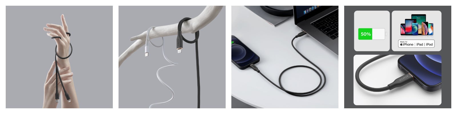 - Anker PowerLine lll Flow USB-C & ライトニングケーブル | 絡みにくい高耐久ケーブル