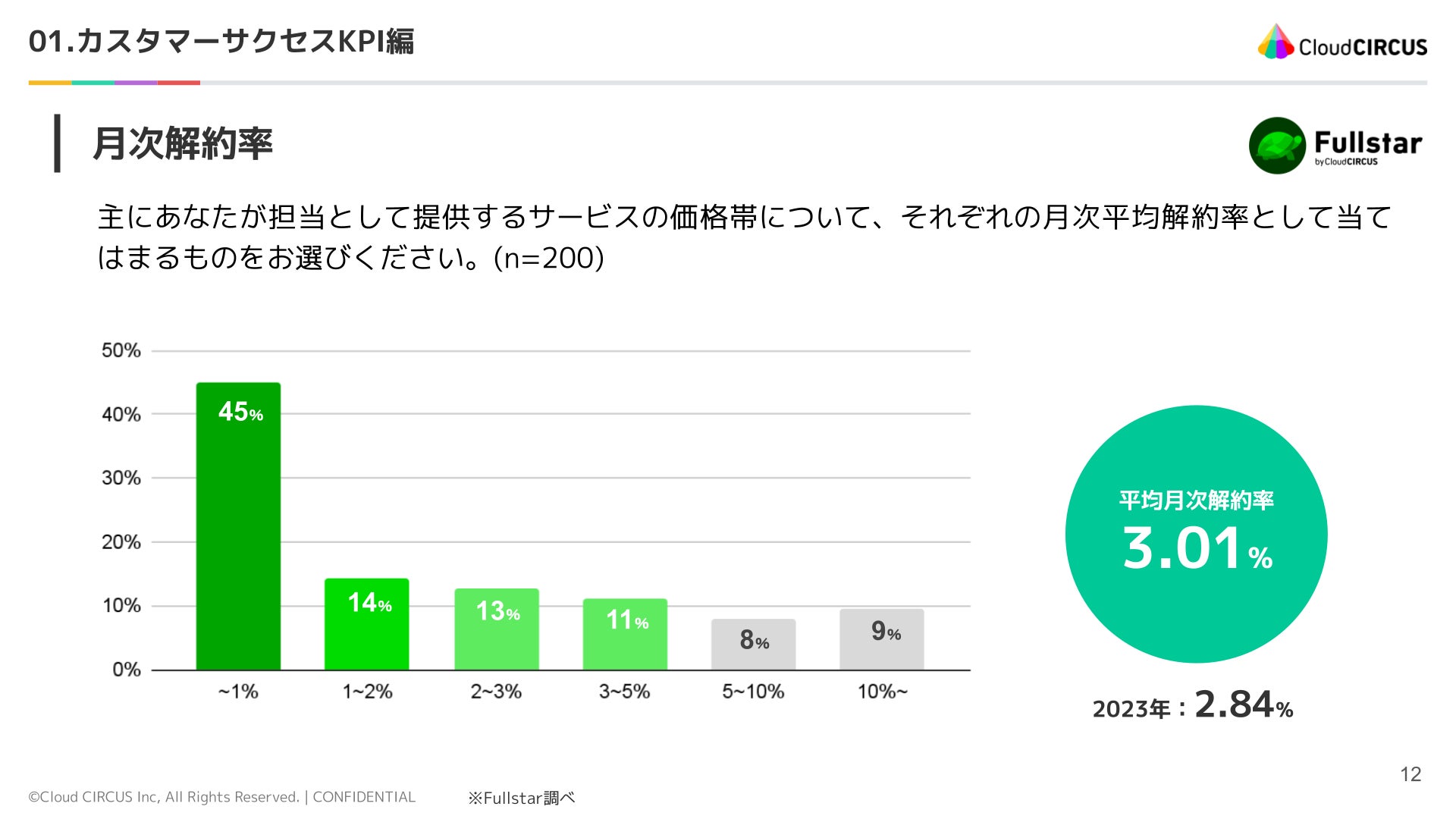 ① 国内BtoB SaaSの平均月次解約率(カスタマーチャーンレート)は3.01%