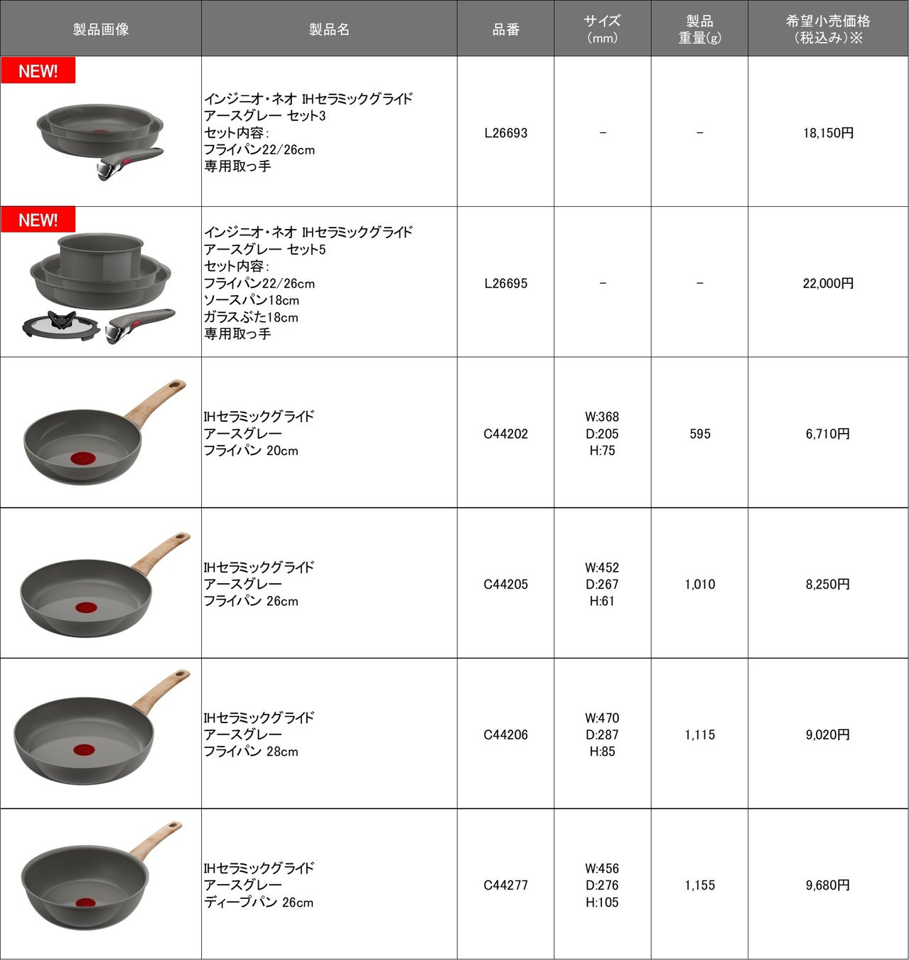 ティファール「IHセラミックグライド アースグレー」ラインナップ