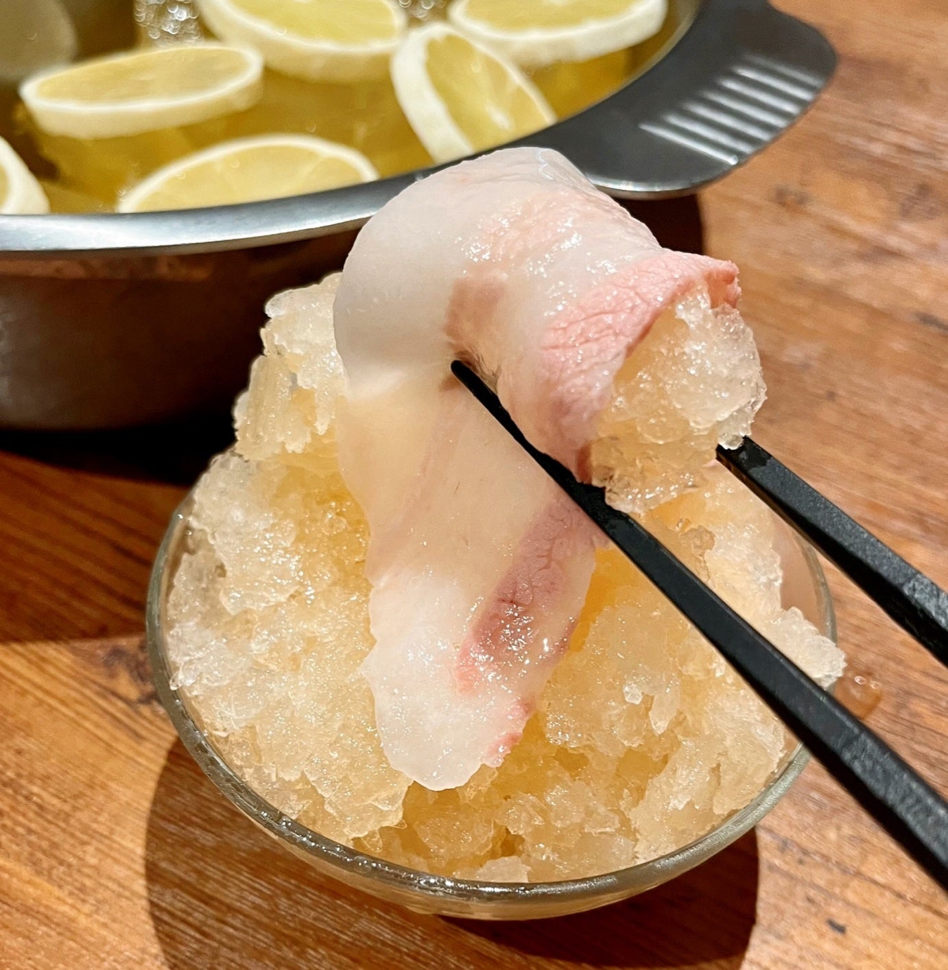 だしには徳島県産の塩を使用しており、まろやかでうまみのある塩味がアクセント。イベリコ豚をくぐらせると、レモンの酸味が脂の甘みを引き立てさっぱりとした味わいを楽しめます。
