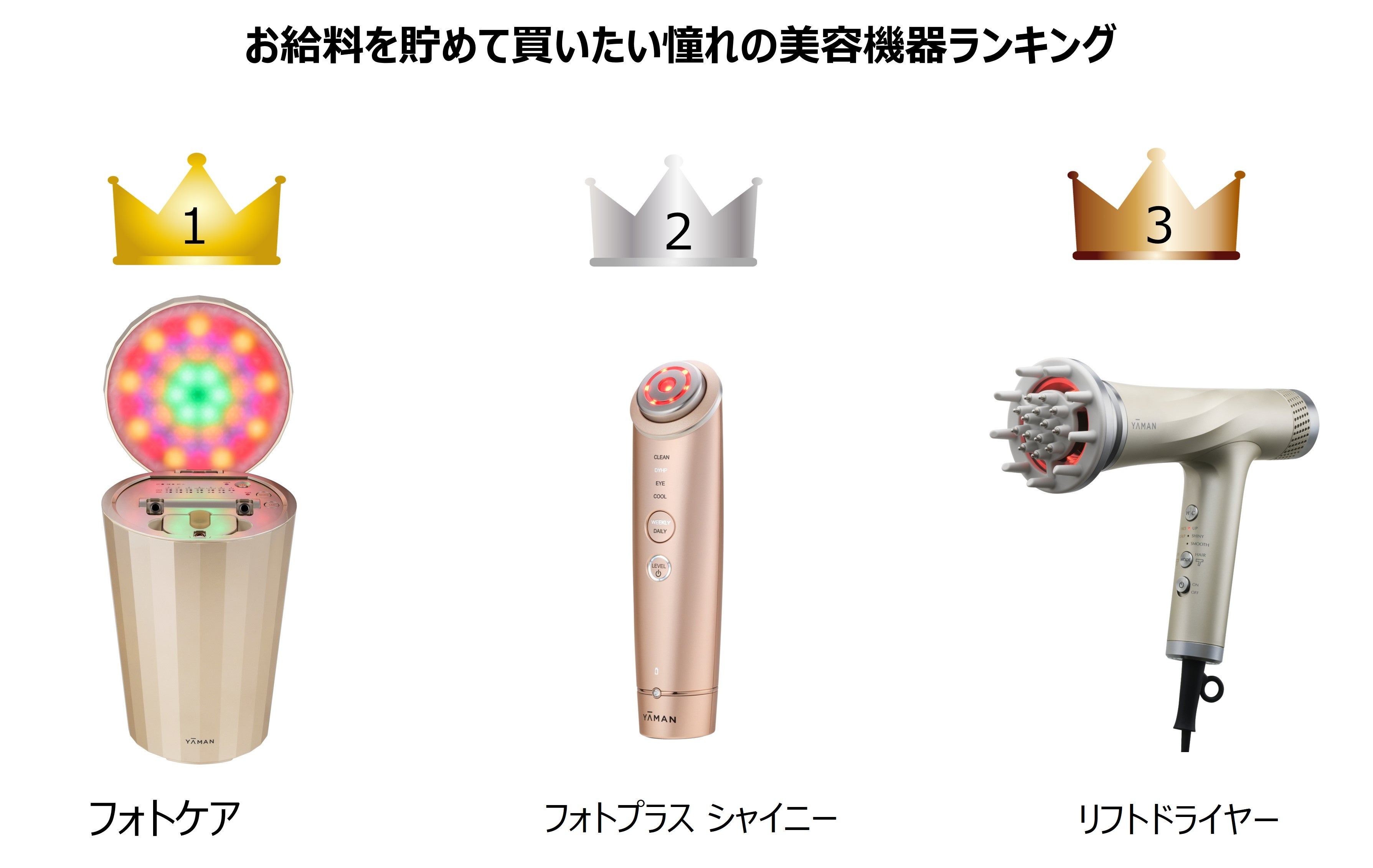 昨年は「肌を綺麗にしたい。マスクで荒れる。」などスキンケア寄りの回答も多く見られましたが、今年目立ったのはメイクアップマインド。昨年2位だった「美顔器」が3位になり、今年の2位には「ヘアケア」がランクインするなど、2位以下の製品にもお出かけのためのマインドが現れました。そこで、美容機器メーカー・ヤーマンがおすすめする人気の美容機器も、ランキングと併せてご紹介いたします。