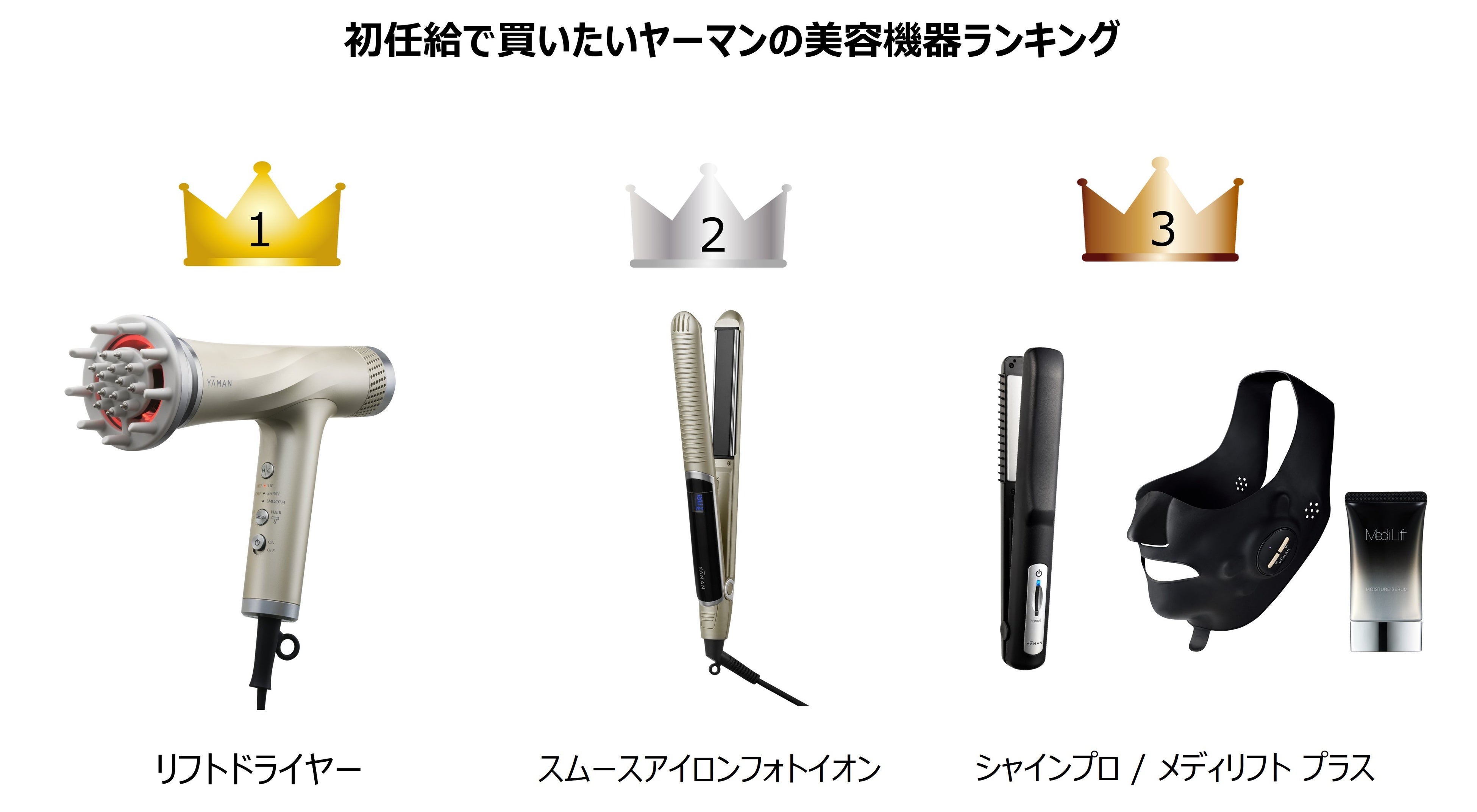 また、美容機器メーカー・ヤーマンの新入社員が初任給でリアルに買いたいアイテムや、お給料を貯めて買ってみたい憧れのアイテムもランキングでご紹介。社会人生活で美容に力をいれていきたい新入社員が注目する美容とその理由とは。さらに、ヤーマン入社2年目の社員にもアンケートを実施し、リアルに購入した美容機器を調査。1年間美容機器に触れてきた社員が、自分で買いたいと思った理由と共に自腹買いアイテムご紹介いたします。