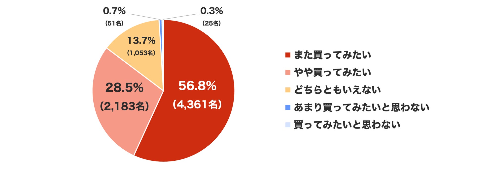 さらに、キャンペーンを通じてマルコメ「プラス糀シリーズ 発酵飲料」を購入した方のうち6,544名(=全体の約85%)がまた買ってみたいと回答しました。