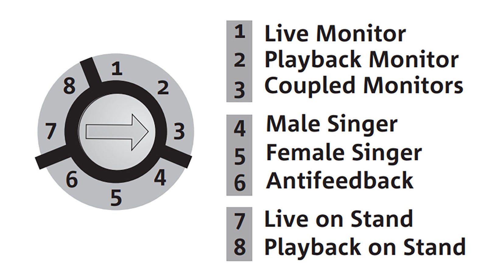 Class-Dアンプに内蔵されるDSPにより、ステージモニター用として6パターン、ポールマウントスピーカー用として2パターンの合計8つのプリセットからシーンに合わせて手軽にサウンドを変えることができます。