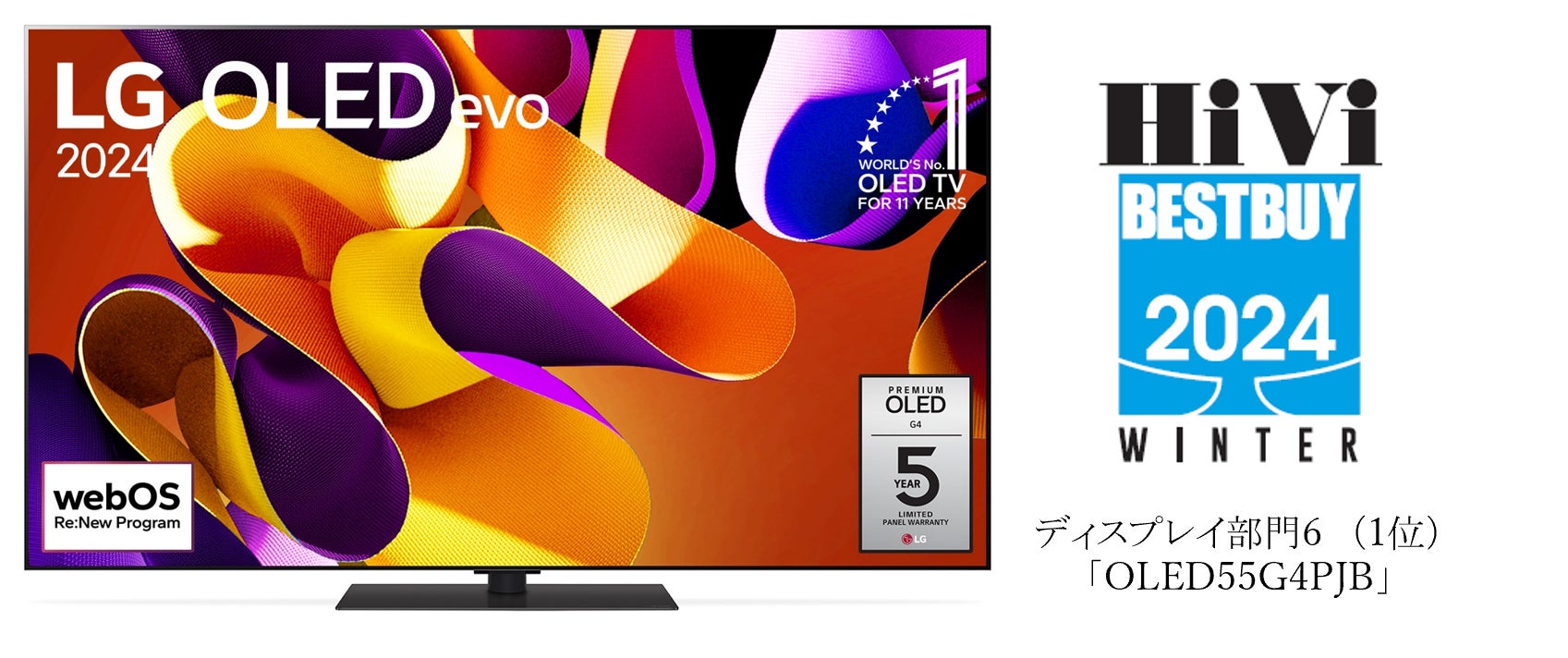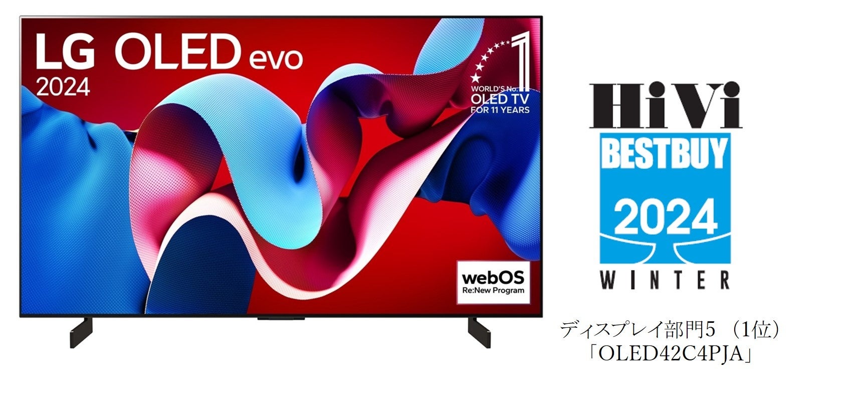さらに、「HiVi冬のベストバイ2024」においても、ディスプレイ部門6(有機EL、51型以上60型以下)で「OLED 55G4PJB」、ディスプレイ部門5(有機EL、50型以下)で「OLED42C4PJA」が、第1位を獲得しています。
