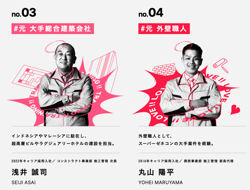 文系出身の方、理系出身の方、未経験の方、経験者の方、若手もベテランも関係なく、誰もが活躍できる組織づくりで、業界No.1の建築会社を目指しています。業界や経験の壁を「越境」して、No.1を目指す人に出会いたいと考えています。