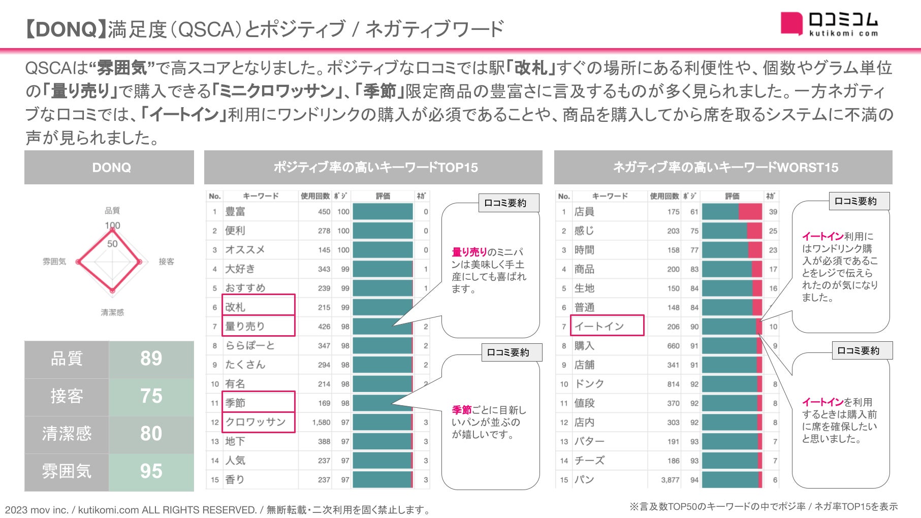 今回は、このAI解析を用いて【DONQ】 のQSCA・ポジ / ネガキーワードを確認しました。