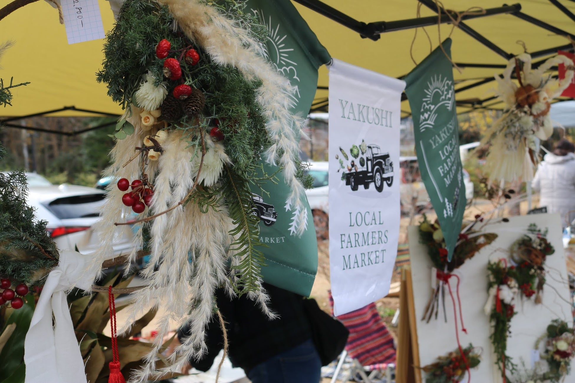 毎月、第3土曜日・日曜日に開催している「やくしLOCALファーマーズマーケット」。12月はクリスマスマーケットとして12月21日・22日に開催します。地場野菜やアクセサリー、個性豊かな雑貨に加え今回はクリスマスアイテムが揃う特別なイベントです。