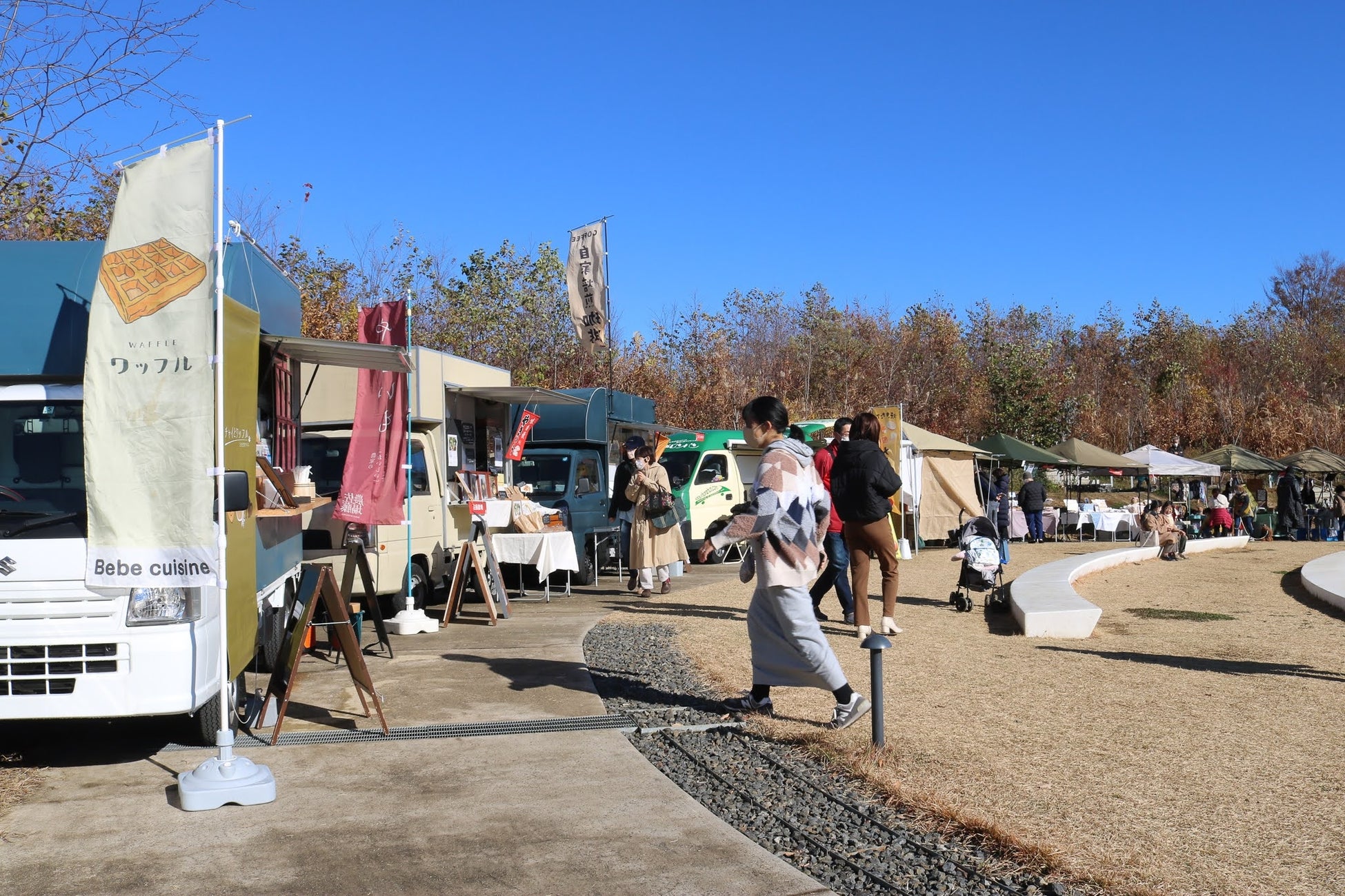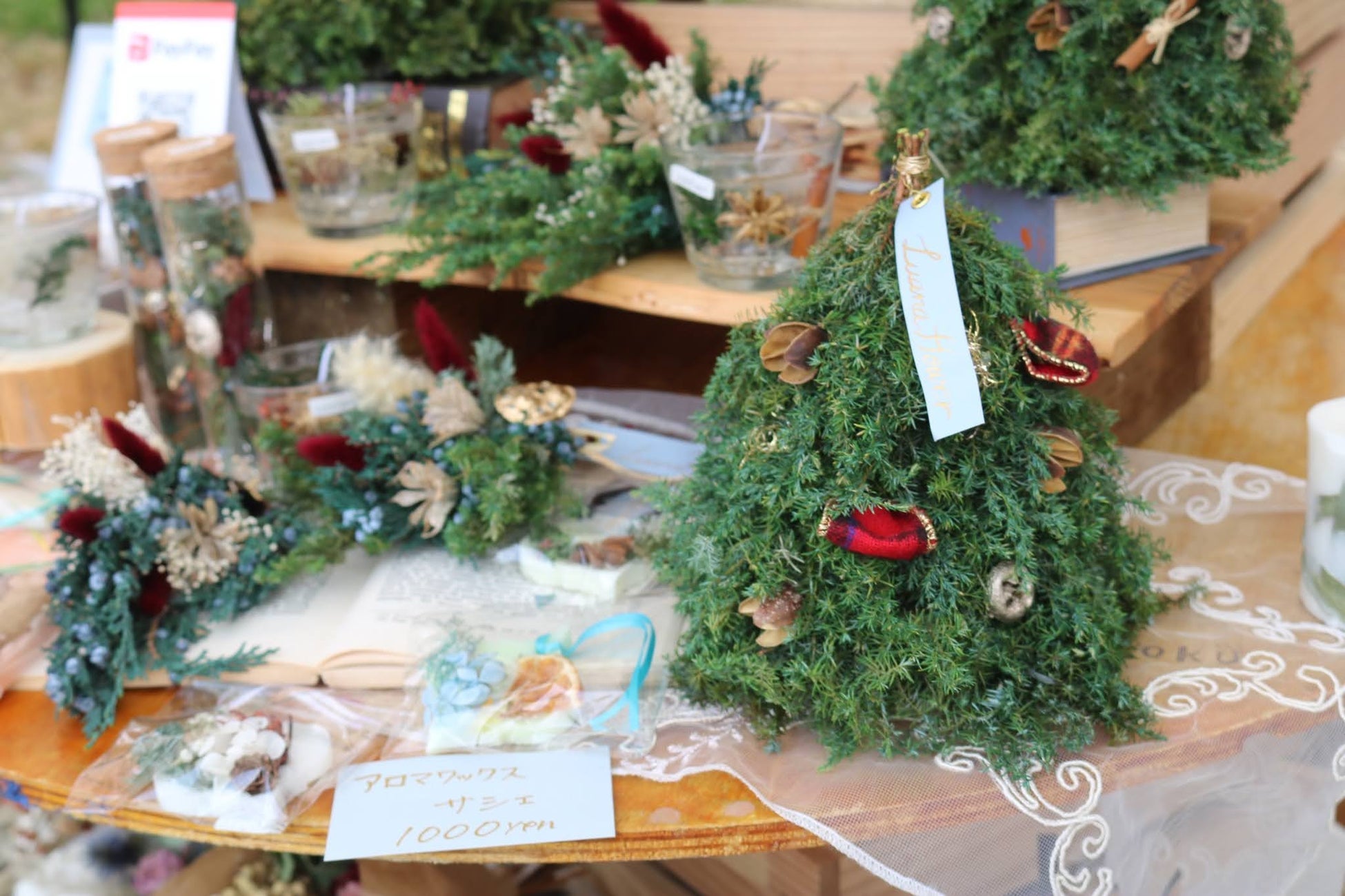 近隣農家さんの地場野菜、焼き菓子、地場農畜産物を使った蕎麦もち団子、ベーグル、蜜蝋キャンドル、布雑貨、アクセサリー、クラフト雑貨、クリスマスリース・スワッグ、だれでも参加できるワークショップ、窯焼きピザ・焼き立てパン・ワッフル・ホットドリンクのキッチンカー、ヨーヨーすくい 等 約35店舗