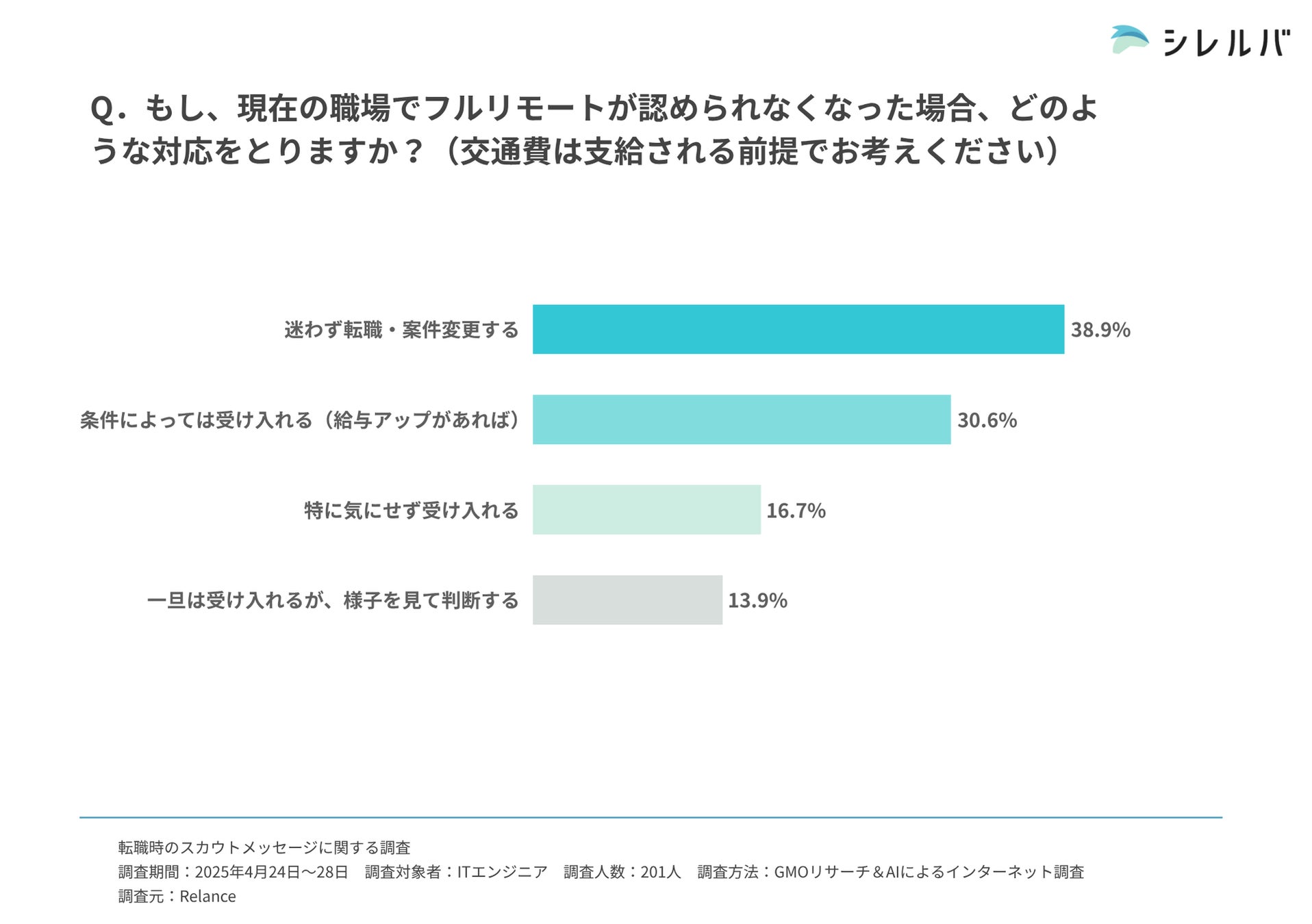 Q.もし、現在の職場でフルリモートが認められなくなった場合、どのような対応をとりますか?(交通費は支給される前提でお考えください)