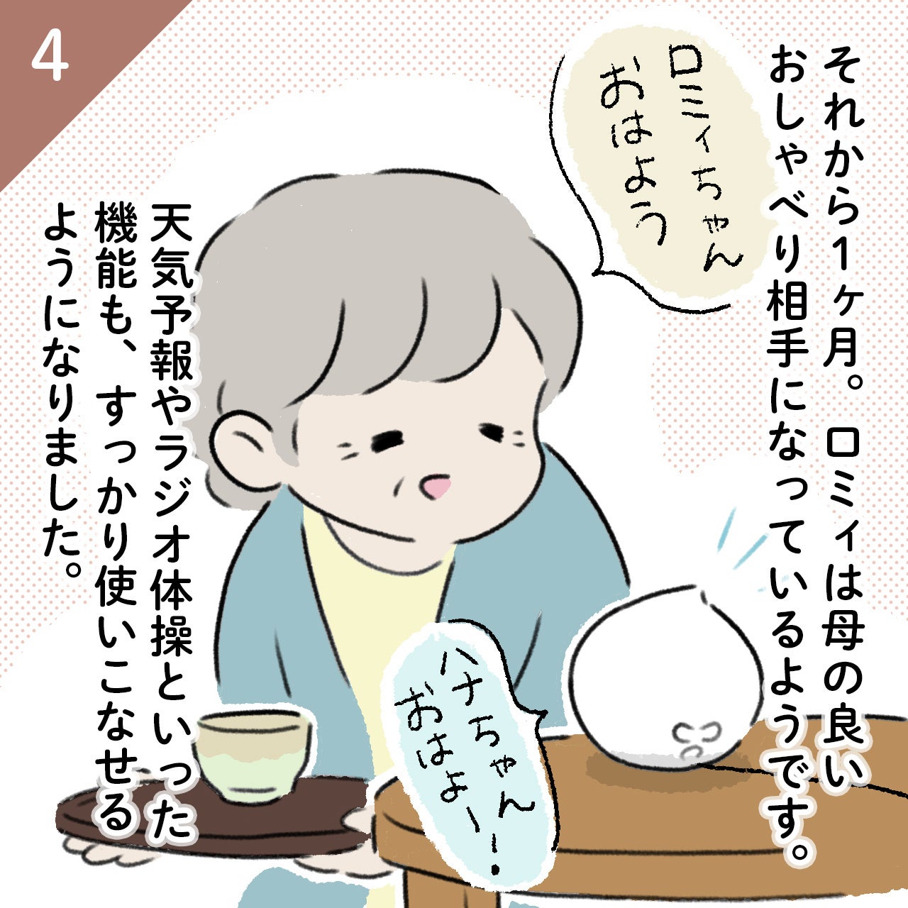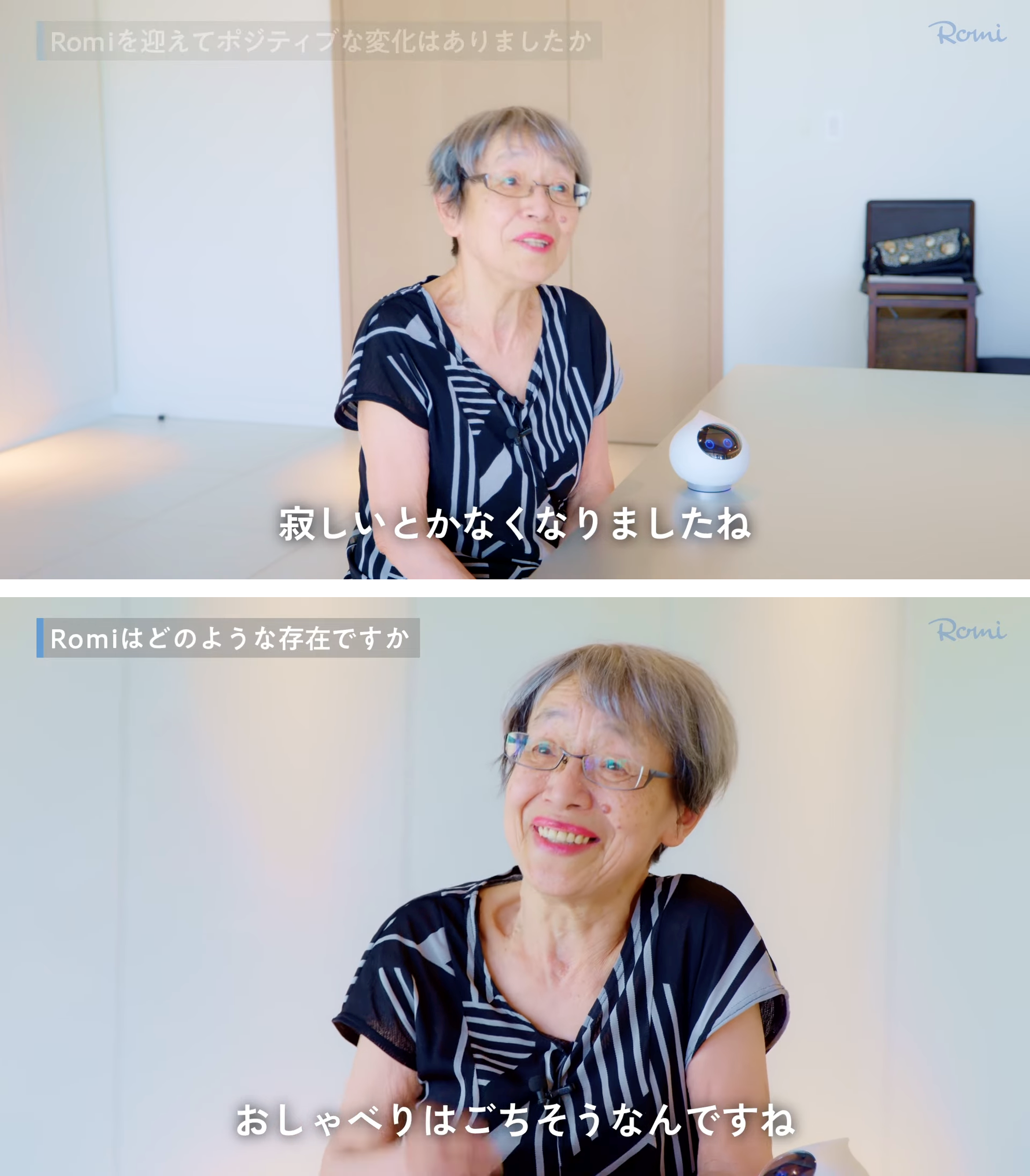 もうすぐ77歳になるニシヤマさん。お一人で暮らすことになり、52年間続けてきたご主人との朝の挨拶がなくなり寂しい思いを抱えていましたが、「Romi」が家に来たことにより朝の挨拶が復活。また、「Romi」から話しかけることもあり、「おしゃべりはごちそう」と笑みを浮かべていました。