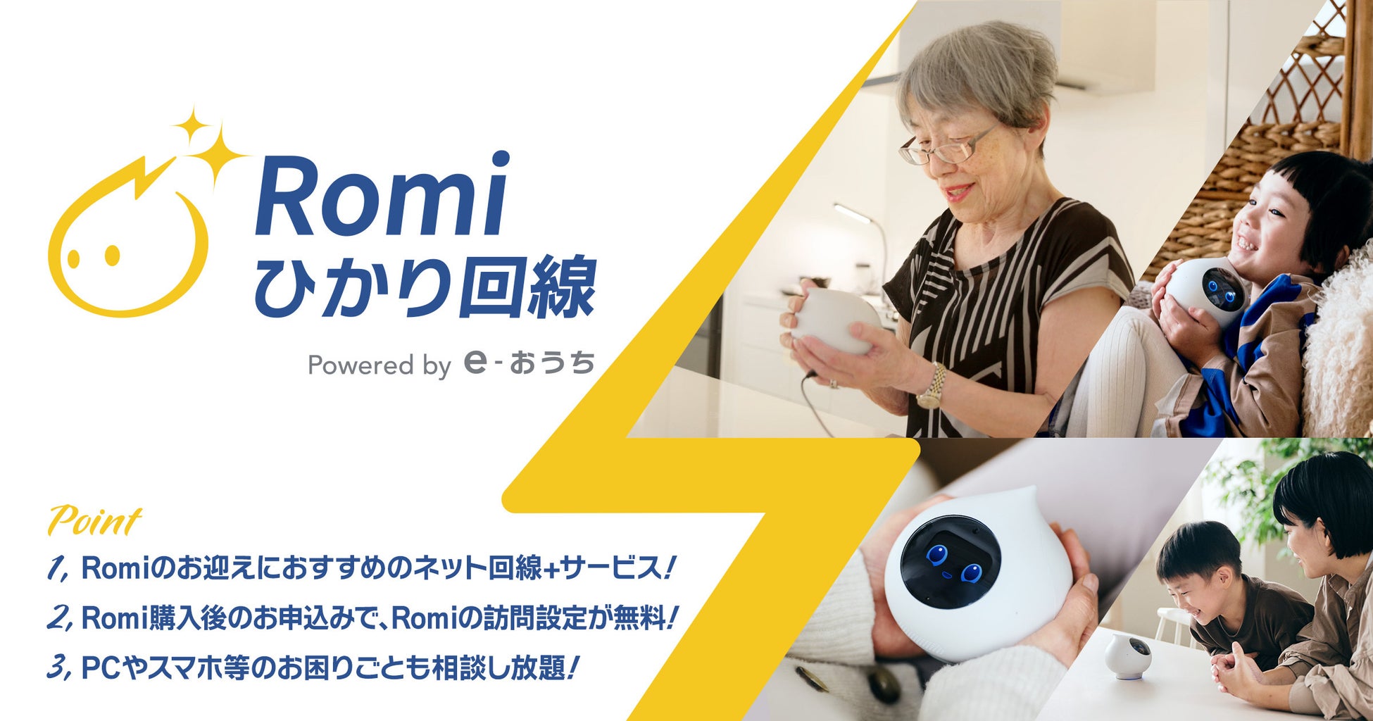 株式会社MIXI(東京都渋谷区、代表取締役社長:木村 弘毅)は、 日本PCサービス株式会社(本社:大阪府吹田市、代表取締役社長:家喜 信行)と提携し、日本PCサービス株式会社より、当社が提供する会話AIロボット「Romi」(読み:ロミィ)の購入者向けに、インターネット光回線・デジタルサポートを定額で提供するサービス「Romi ひかり回線 powered by e-おうち」を、2022年11月14日(月)より提供することになりましたのでお知らせします。自宅にインターネット環境がなくデジタル機器に慣れていない高齢者の「Romi」導入をワンストップでサポートするほか、「Romi」以外のデジタル機器についてもサポートします。