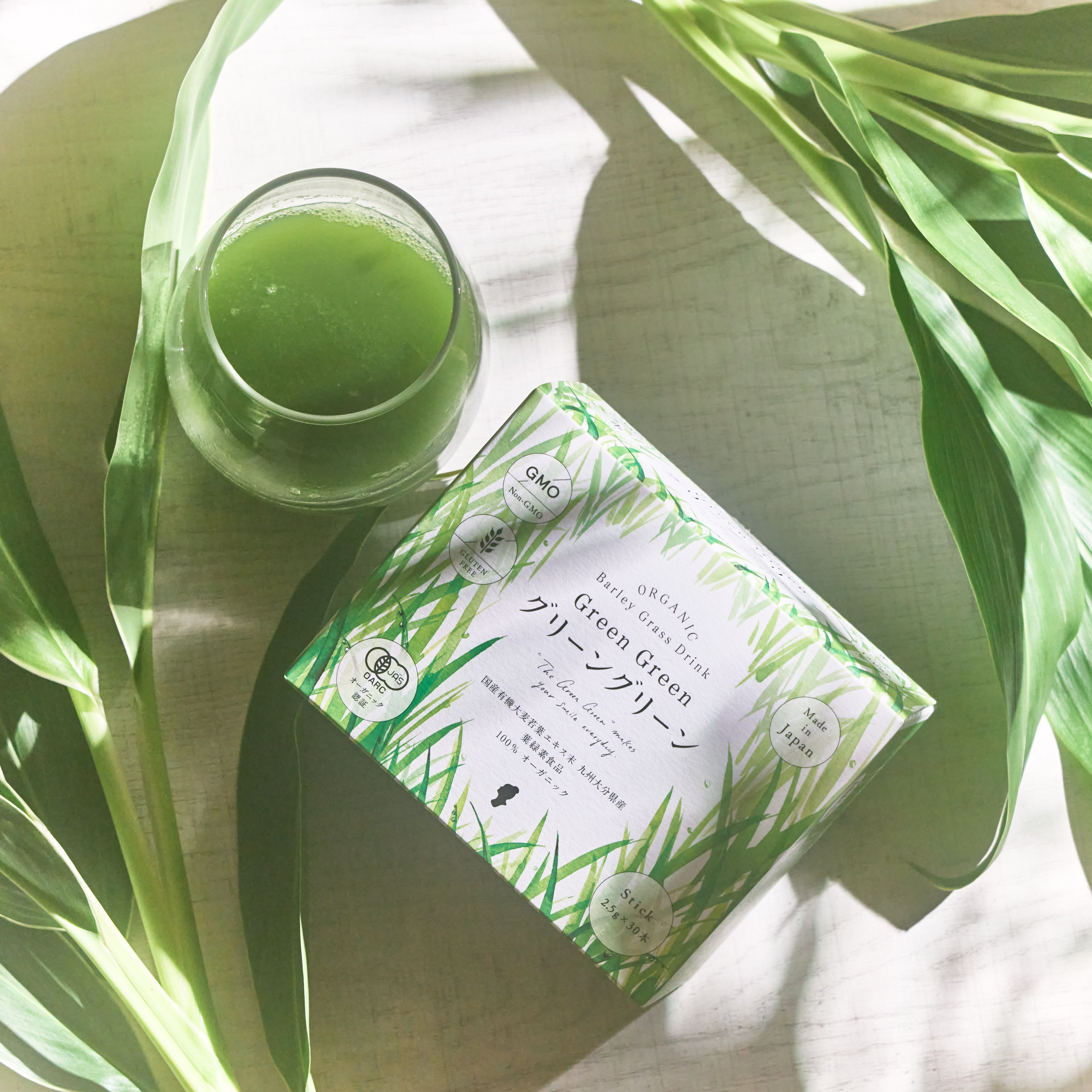 国産有機の大麦若葉を粉末化した、100%オーガニックの葉緑素ドリンク。