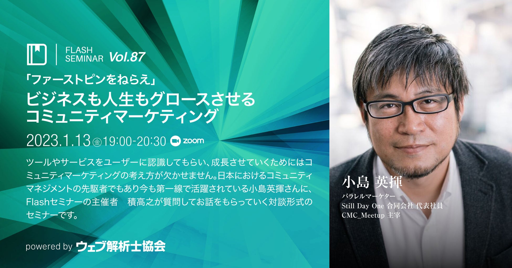日本におけるコミュニティマネージャーの先駆者でもあり第一線で活躍されている小島英揮さんと、当Flashセミナーの主催者・積高之による対談形式のセミナーです。