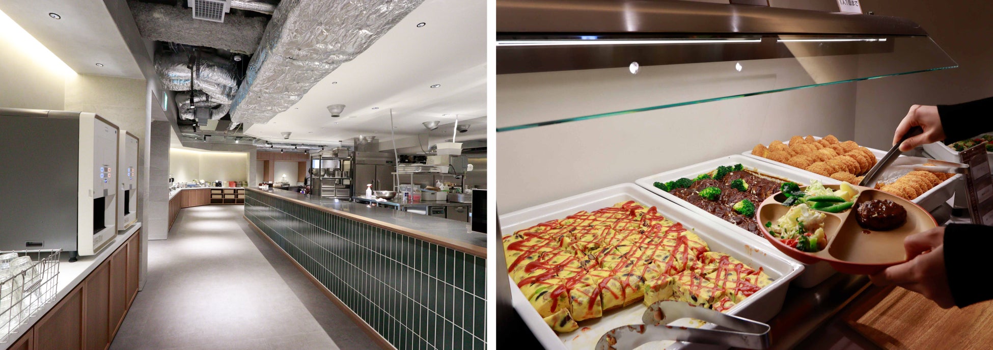 今回のリニューアルでは、事業拠点を集約したことによる社食利用者の増加を見込み、キッチンスペースを拡大するとともに、ビュッフェスタイルを取り入れ、メニューの充実と満足度の向上を図っております。また、昨今の材料費の高騰を踏まえた価格改定を行いましたが、社員の生活支援を充実させるため、「健康食事手当」を合わせて導入することで社員食堂を実質的に無償化し、健康的な食生活をサポートいたします。