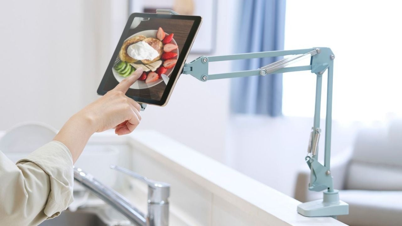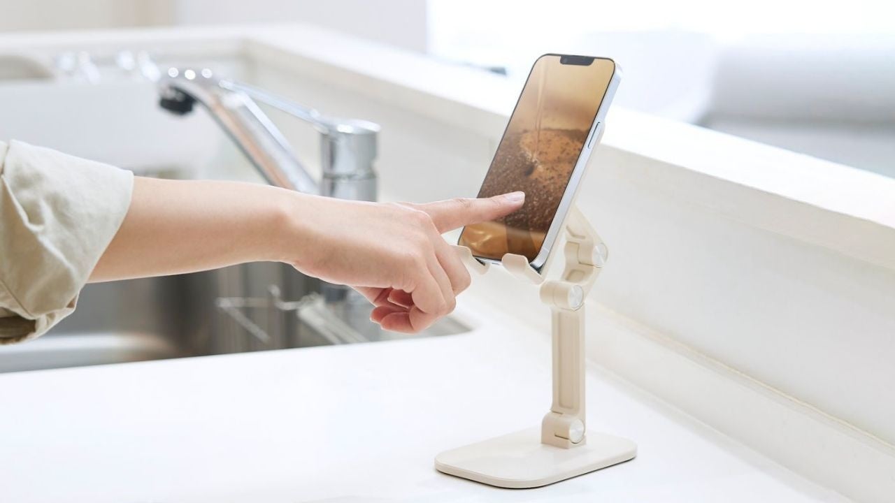 調理をしながらレシピ検索や動画視聴ができる!インテリアに馴染む色合いのキッチン向けスマートフォン&タブレットスタンド3種類を新発売