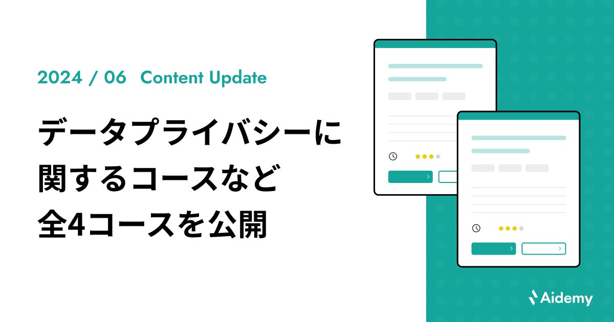 2024年6月は、開発プロセスの中でもチーム開発スキルに焦点を当てた「生産性を高める チーム開発入門」や、データの利活用とプライバシー保護の両立を学ぶことで企業価値を高める「事例で学ぶ!パーソナルデータ活用のためのプライバシー保護」など、全4コースをリリースいたしました。