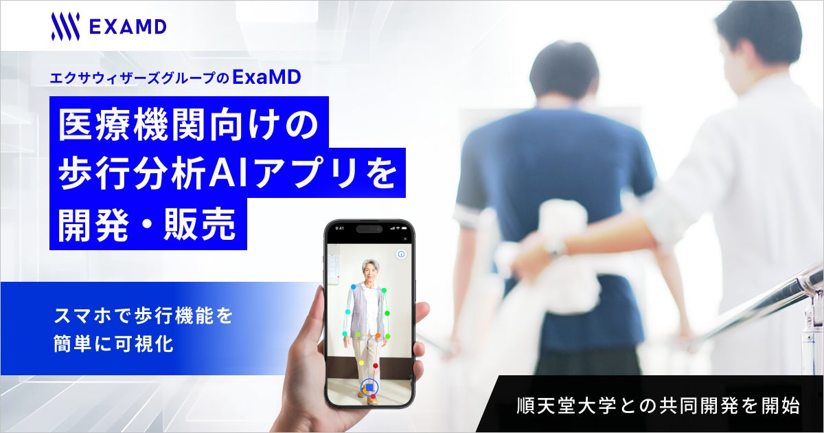 株式会社エクサウィザーズグループの株式会社ExaMD(東京都港区、代表取締役:羽間 康至、以下ExaMD)は、AIを用いて患者の歩行機能を短時間で分析できる医療用AIアプリを開発し、2025年第2四半期に販売を開始する予定であることをお知らせします。また本件に関連し、医学的な評価や臨床エビデンスの構築、医療機器としての安全性確保を主な目的とし、学校法人順天堂(以下、順天堂大学)との共同開発契約をこのほど締結いたしました。