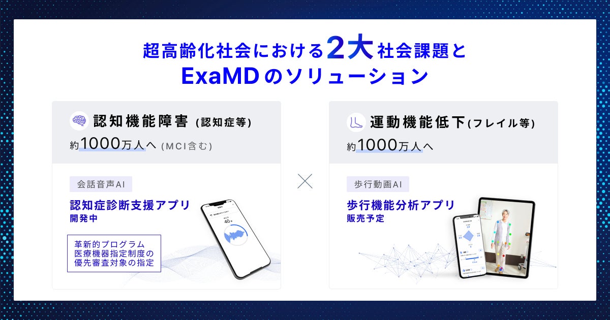 ExaMDは今回の「運動器/リハビリ」、優先審査指定を受けた「認知症」の両分野を中心に、AIを利活用した超高齢社会の課題解決に取り組んでまいります。ExaMDは医療機器製造販売業の業許可を2025年3月に取得しており、自社による医療機器の開発、販売が可能となっております。