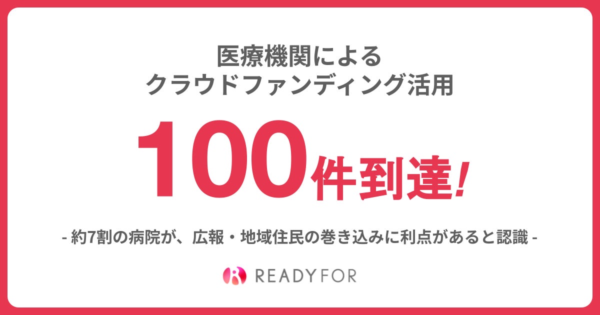 READYFOR株式会社(所在地:東京都千代田区、代表取締役:米良はるか)が運営する日本初・国内最大級のクラウドファンディングサービス「READYFOR」において、医療機関によるクラウドファンディングプロジェクトの公開件数が100件に到達しました。