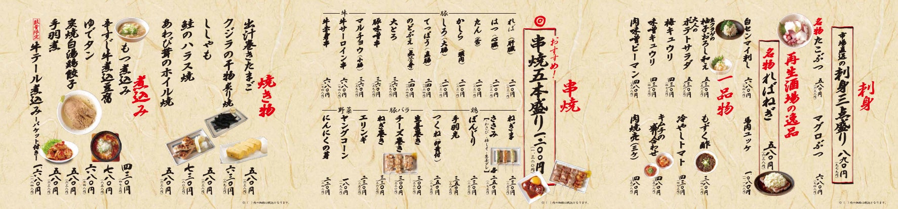 - 日本再生酒場 築地本店メニュー ※仕入れ状況等により内容に変更が入る場合がございます