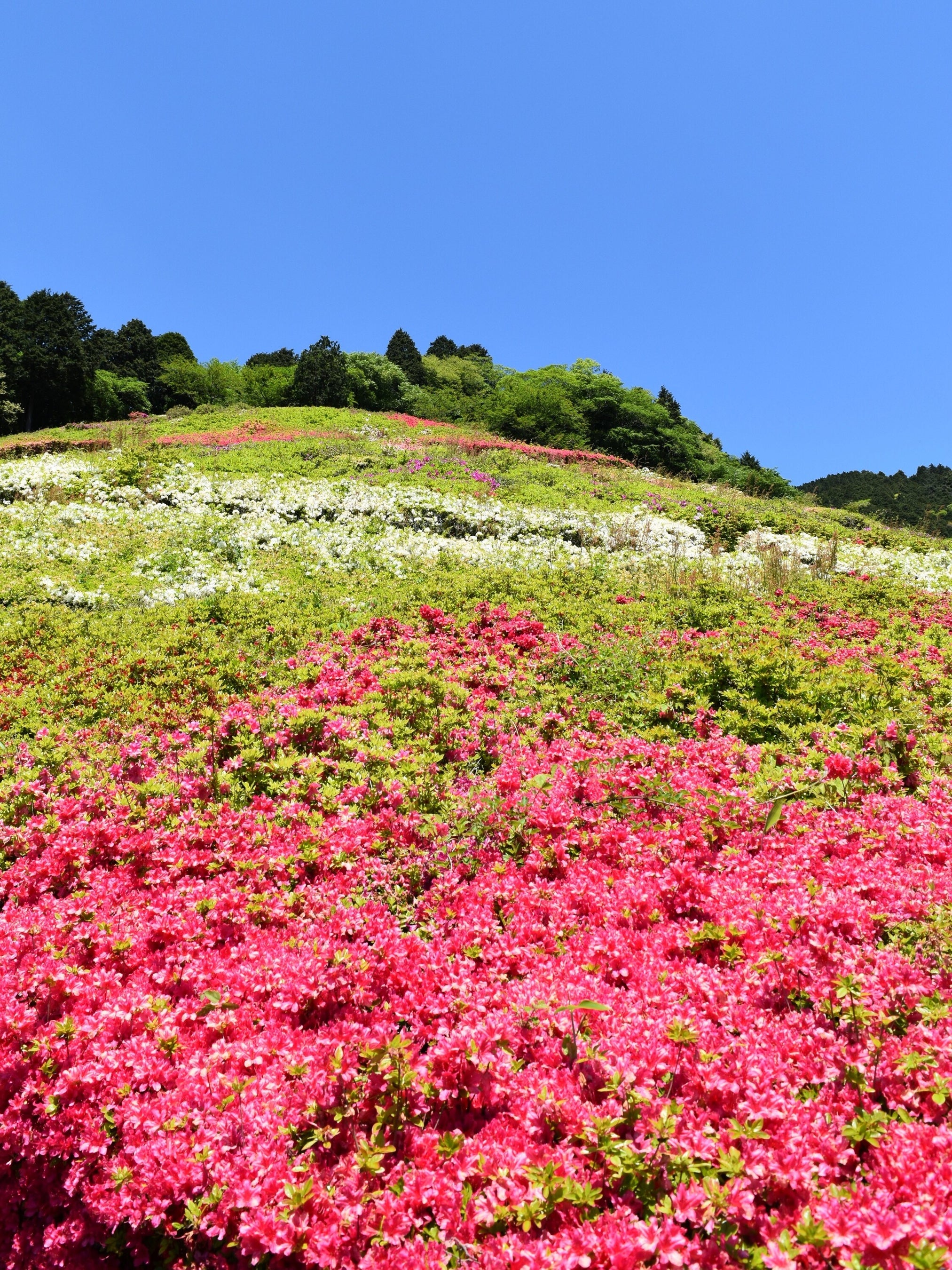 108ヘクタールの広大な公園の丘一面に、鮮やかなツツジの絶景が広がります