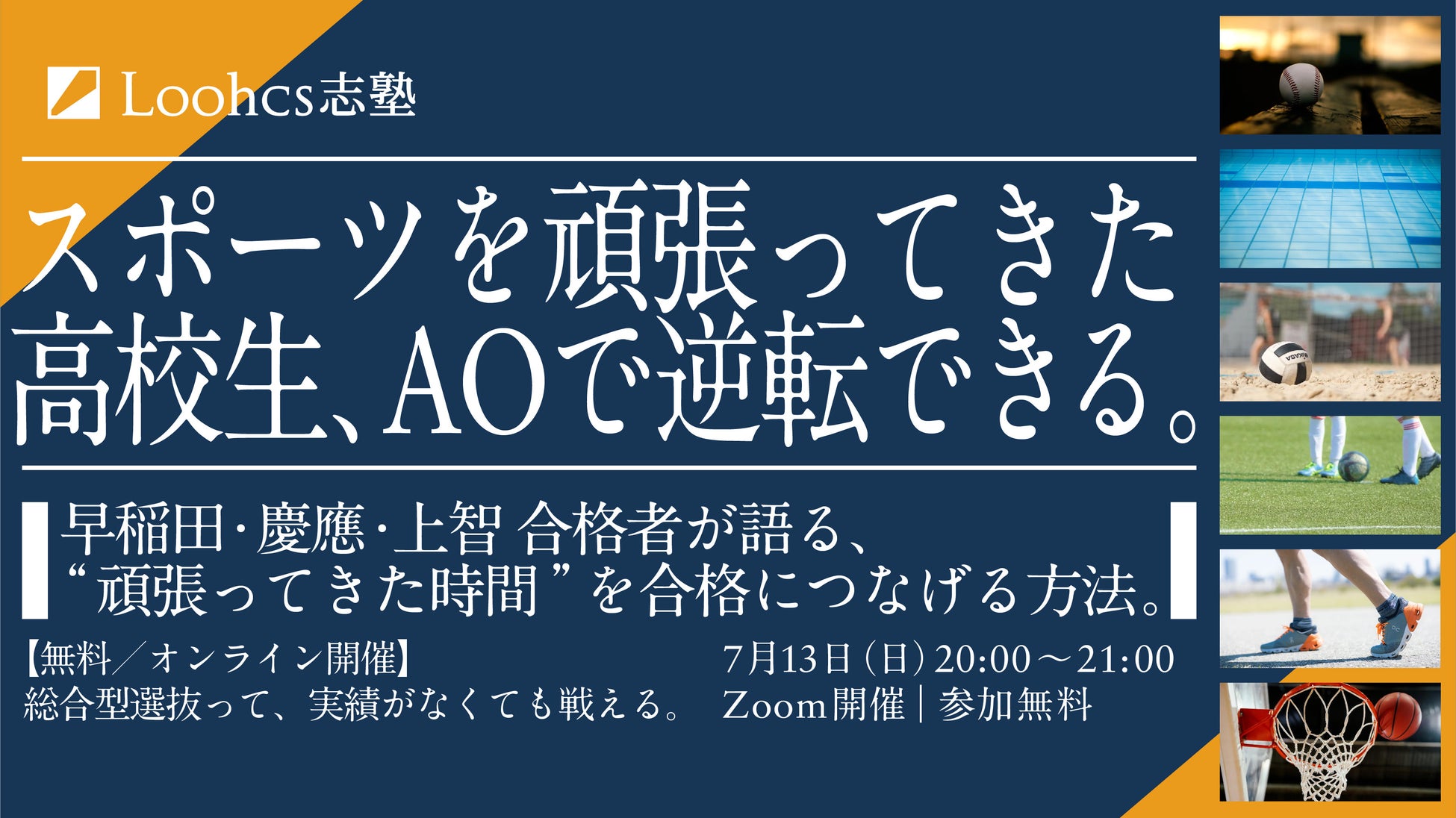 部活に全力を注いできた高校生のための「総合型選抜 徹底解説講座」開催決定【7月13日・無料オンライン開催】
