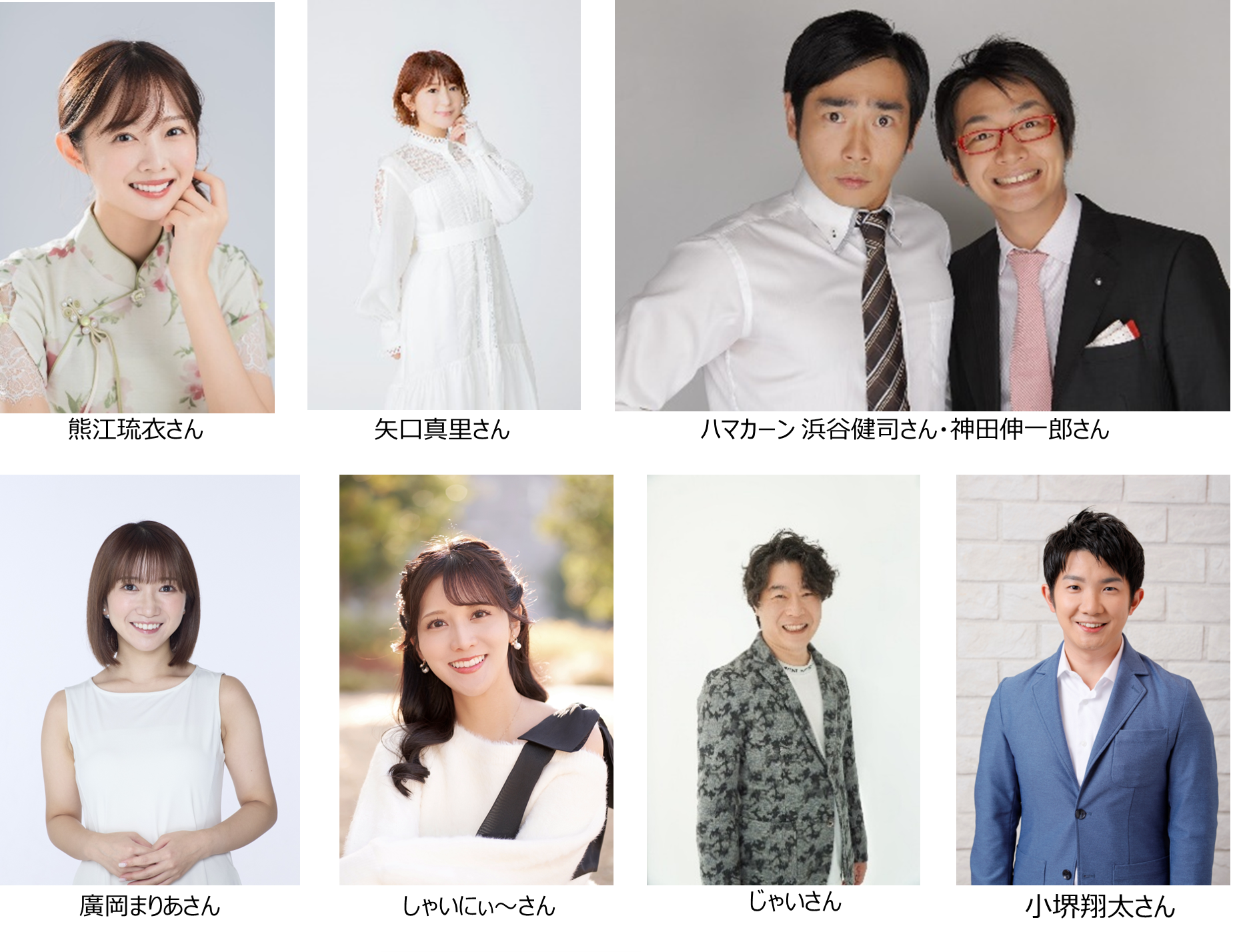 市川俊吾さん(日刊競馬記者)、一瀬恵菜さん(競馬大好きタレント)、河田キイチさん(BOOMER・お笑い芸人)、かなポッポ鳩村さん(勝馬記者)、熊江琉衣さん(モデル・タレント)、栗林さみさん(フリーアナウンサー)、小堺翔太さん(フリーアナウンサー)、しゃいにぃ~さん(石川彩夏・モデル)、じゃいさん(お笑い芸人)、杉山緋那さん(モデル・タレント)、砂岡春奈さん(フリーアナウンサー)、田中歩さん(フリーアナウンサー)、長崎百華さん(モデル)、浜谷健司さん・神田伸一郎さん(ハマカーン・お笑い芸人)、廣岡まりあさん(タレント・キャスター)、矢口真里さん(タレント)、レッド吉田さん(TIM・お笑い芸人)、SEAMOさん(アーティスト)