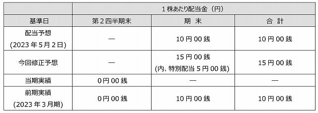 以上の状況から、総合的に勘案した結果、期末配当予想を従来の10円から、1株当たり5円の特別配当を実