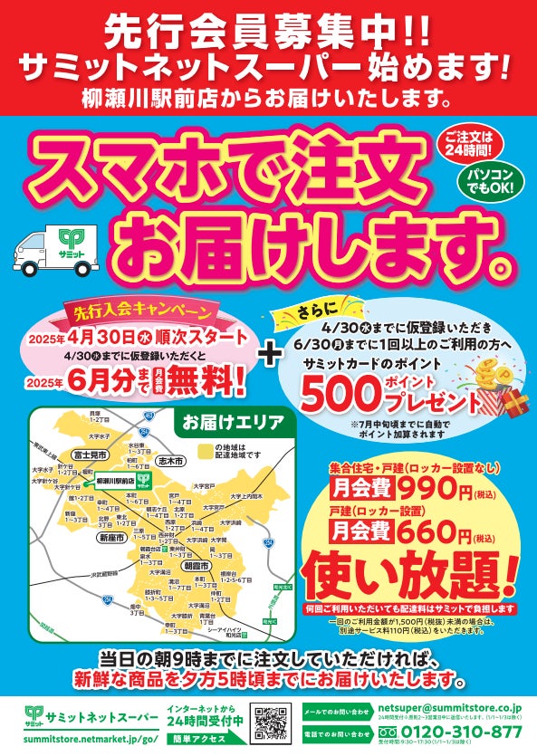 「サミット」のお店からお届けします!「柳瀬川駅前店」にてサミットネットスーパー開始先行会員募集中