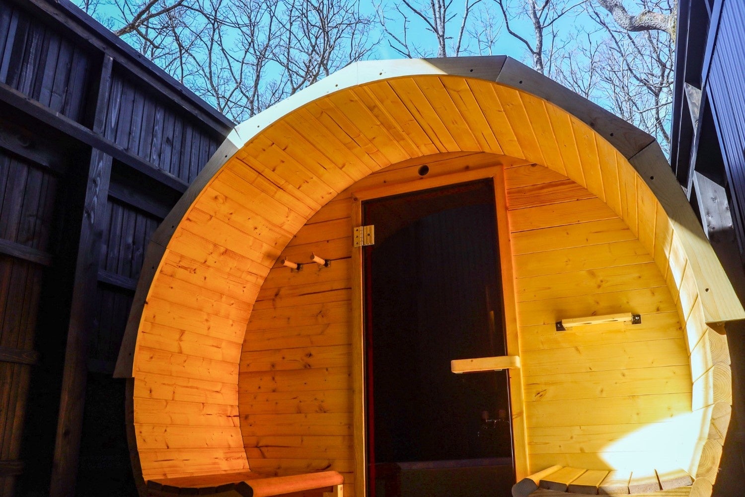 デラックスは末広がりでより広いタイプのアーチ型のバレルサウナと客室露天風呂をご用意!