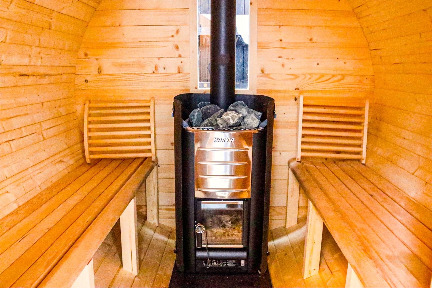 薪ストーブの火を眺めたり、専用露天風呂も備わっており、セルフロウリュウからの水風呂、外気浴も同時にお楽しみいただけます。